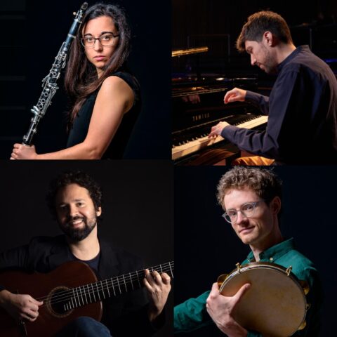 Das Quartett Mondo Chôro,bestehend aus dem deutschen Carl Zinsius, Percussion, der Spanierin Anais Pasanau Miró an der Klarinette, und den Brasilianern Flávio Nunes an der 7saitigen Gitarre und Henrique Gomide am Klavier, interpretiert mit seinen Hintergründen aus Jazz, klassischer Musik und zeitgenössische Choros auf eigene und frische Art und schafft eine einzigartige Interaktion und Kommunikation mit dem Publikum. Mondo Chôro erhielt im Frühjahr 2025 den Jazz Slam Preis Philharmonie Essen.