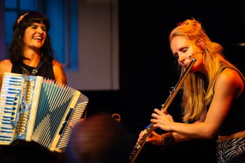 Floor Polder (Flöte) und Elizabeth Fadel (Klavier und Akkordeon) bilden ein Duo, das das Publikum auf eine musikalische Reise mitnimmt, auf der brasilianische Klänge, Jazzimprovisationen und klassische Einflüsse mühelos miteinander verschmelzen. Der Titel ihrer EP, Casa das Flores, bezieht sich auf das Haus in Rotterdam, wo sie zusammenlebten. Dieses Haus, besucht von vielen brasilianischen Musiker*innen und Freund*innen, wurde zum pulsierenden Zentrum zahlreicher Jam-Sessions und musikalischer Begegnungen und inspirierte die zwei Musikerinnen zu ihrem einzigartigen Sound: lebhaft, spontan und voller Leidenschaft.